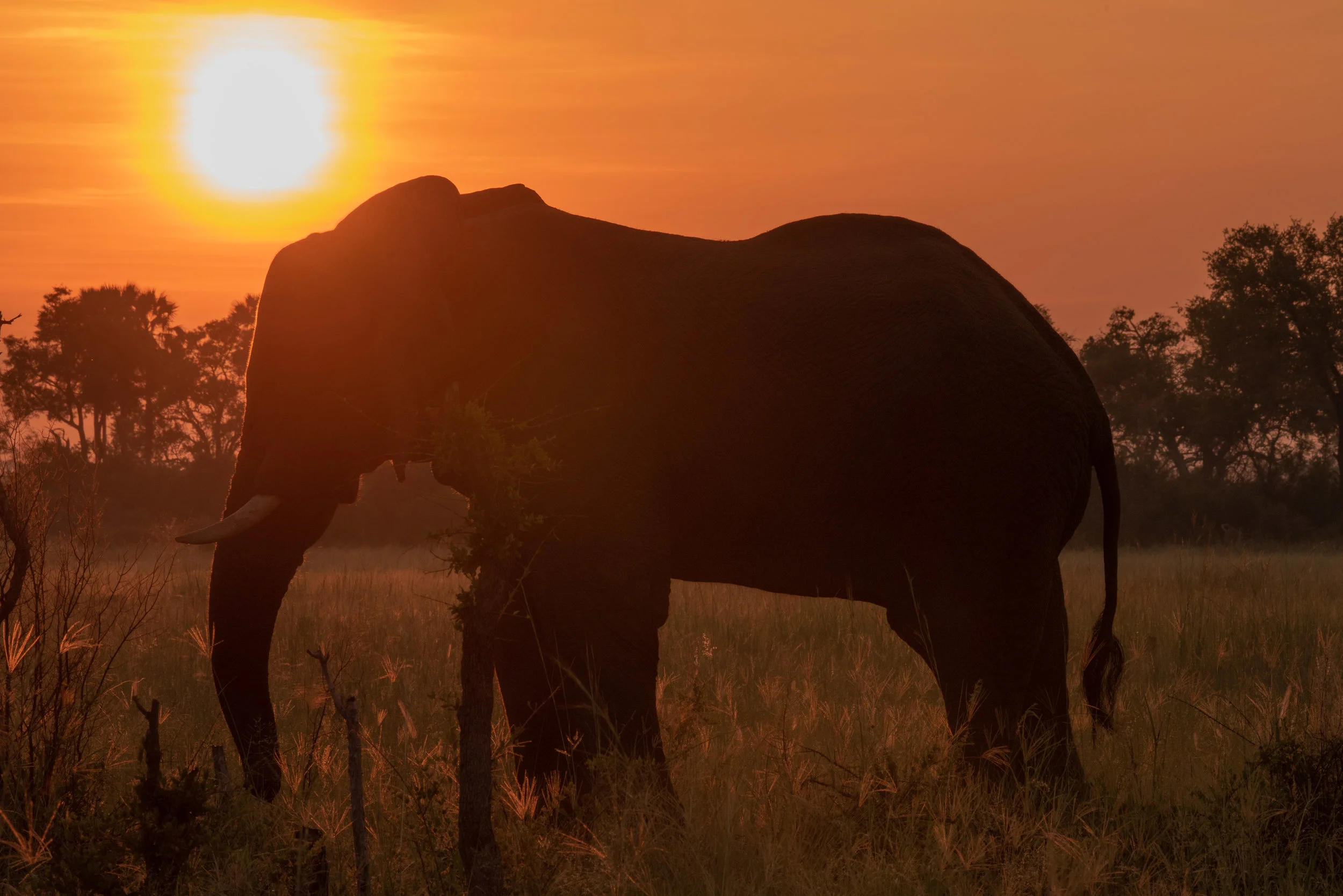 One of the joys of a safari sunrise is to have the sun rising with a large animal such as an elephant, rhinoceros or giraffe silhouetted in the foreground.