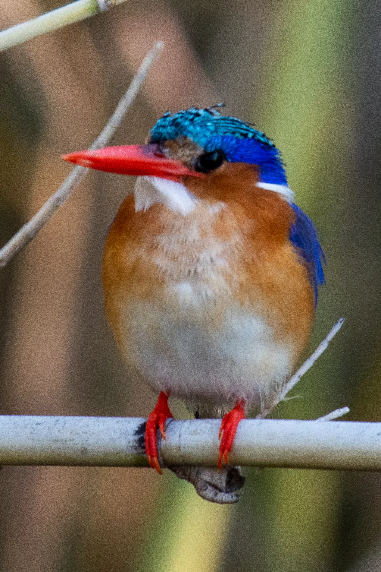 Of all the birds seen this morning, the southern red bishop was arguably the most colourful and also one of the shyest! The male is a stunning red with a black forecrown and chest. We had difficulty getting close to the delightful birds without reeds impeding our view and they are now set as a challenge to photograph in the next day or so.