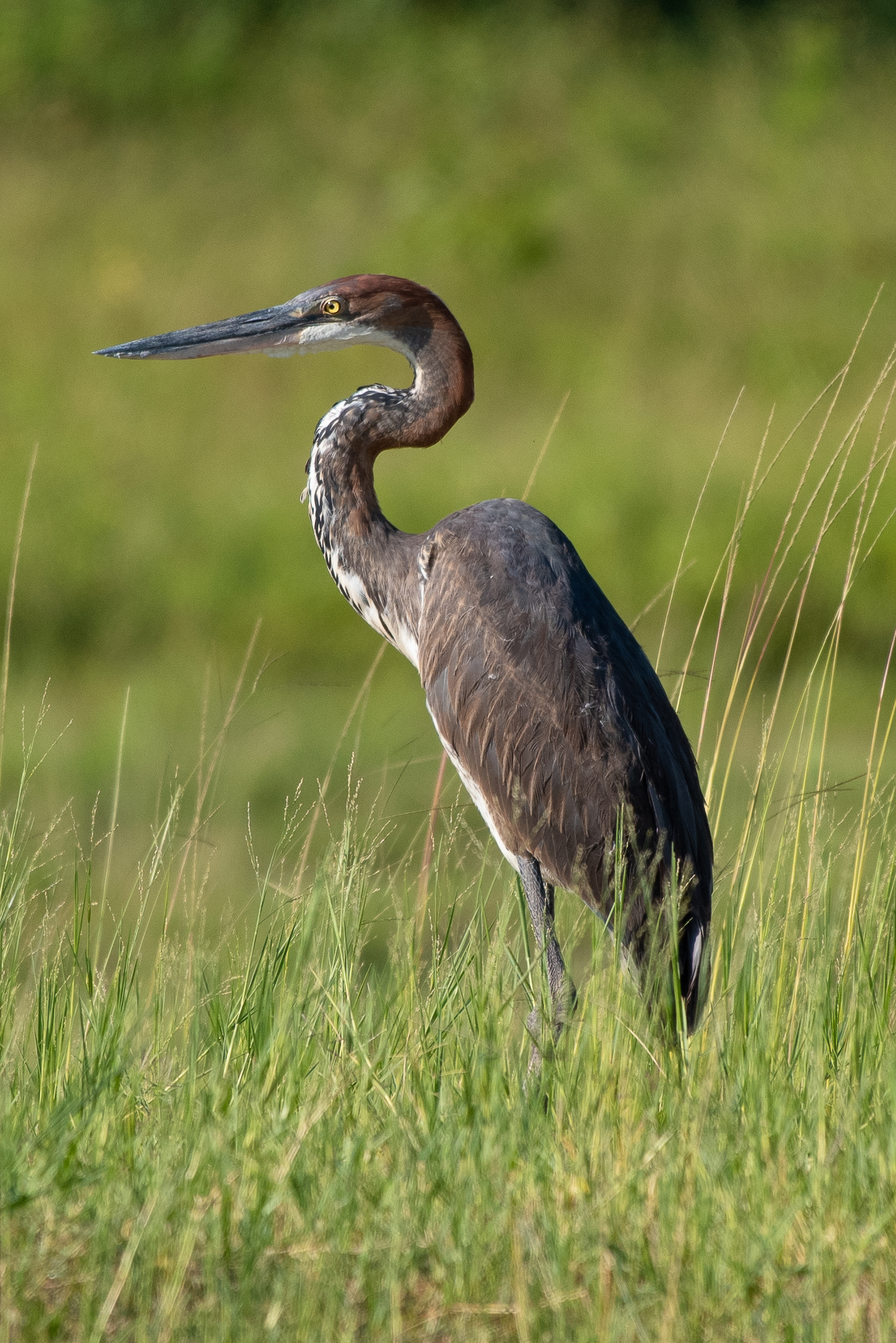 During our two and a half hours of typically slow and quiet movement along the embankment we sighted around forty different species of birds. These included several different egrets and herons including the spectacular goliath heron. This elegant bird is the largest of the herons and has a chestnut head and neck with greyish purple underparts.