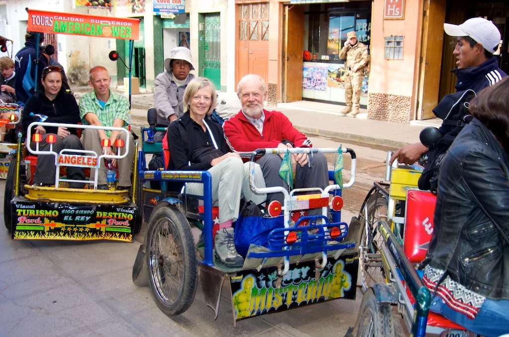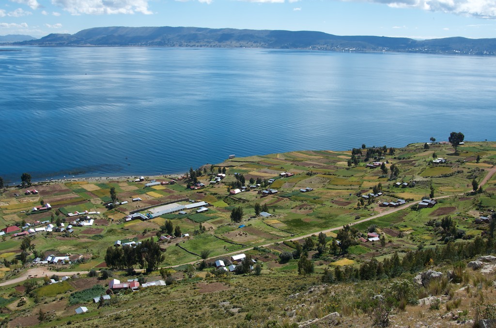 Our next destination was our home stay At Luquina which has been set up with local families who live nearby the lake. Our stay commenced at the local school with a game of soccer between visitors and hosts. There was much amusement & laughter & our hosts won by a narrow margin. The game finished with the sun setting over Lake Titicaca in the background. Our hosts then put on a party for us where we had to dress up in local costumes & participate in traditional Inca dancing. A local band played music however it was the local children who stole the show. It was the time for us to walk up the hill to our room. Our headlamps were hardly needed, as it was a full moon & a clear night. Our room had a double bed plus 2 single beds & it was clean despite being basic. Our Mama for the evening, Aurora, & her 15 year old son Edgar spoke very little English so it was a challenge to hold a conversation. There was no WiFi & the translator on the iPhone does not have Aymana. However our hosts were delightful & friendly & we managed with sign language very well. The Papa was working in Puno driving the bicycle taxis. We had a meal of quinoa soup & a local dish served with rice. The meal was prepared for hard working farmers so it was large & healthy. We ate our meal in the kitchen which was just a mud-brick shed with no door, a small table, a bench seat & an old chair which doubled as a bench. It had a basic wood and dung fired pottery oven in the corner but no chimney so the walls were covered in soot and the room was very smoky. It made our shack at Anson's Bay seem very luxurious, even compared to 40 years ago in it's original state. Edgar had almost perfect teeth which is probably credited to their practically no sugar diet & he & his Mama were very proud of this. Dental care is not affordable to these people & Edgar was the exception in having good teeth. After dinner, it was time for bed as, even though they have electricity, life seems to revolve around getting up when the sun rises, working hard & going to bed when it is dark. After a long sleep, we awoke to the sound of roosters crowing, cows mooing, donkeys braying & a magnificent view over Lake Titicaca. Breakfast consisted of a fresh hard boiled egg & fried pancakes with a cup of tea. Mama Aurora had already been up & peeled potatoes & Edgar had been up & moved the cows. After breakfast we moved and tethered two of the pigs and then Edgar took us for a walk to a rock built shrine on the top of the 4200m hill. On the steep climb up, he delighted in finding lizards, beetles & snails under the rocks. From the top we had magnificent 360 degree panoramic views and we could appreciate the vasr size of Lake Titicaca. On our descent we gathered twigs from a mint aroma bush to take back for making a herbal tea. It was then time to milk the cows & Tony showed that after 50 years he still had the technique for milking by hand even though not quite as fast. It was now 11:00am & time for lunch before we headed back down the hill to catch the motor boat back to Puno. Meeting up with the rest of our group, everyone agreed that our home stay with the Aymara families had been a memorable experience.