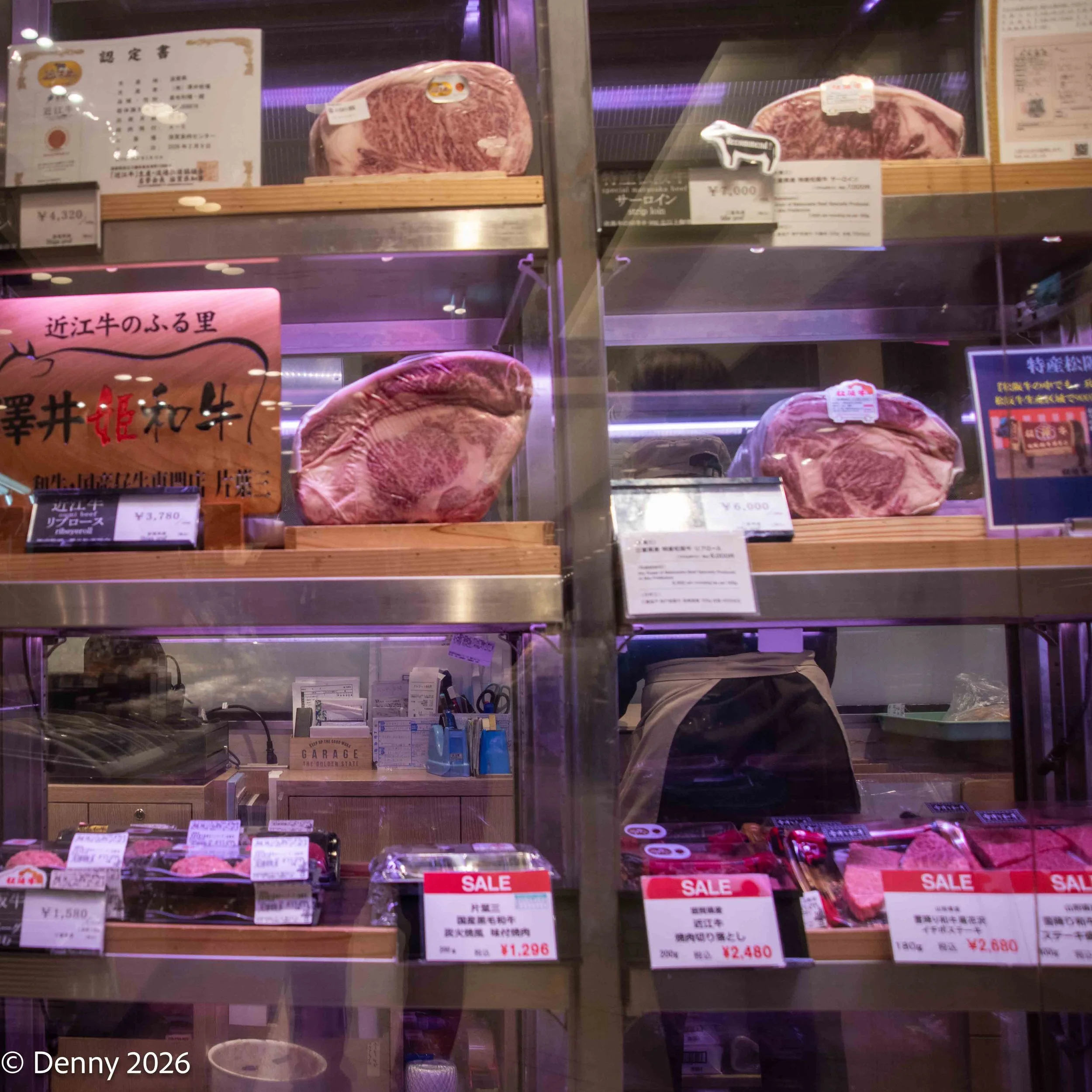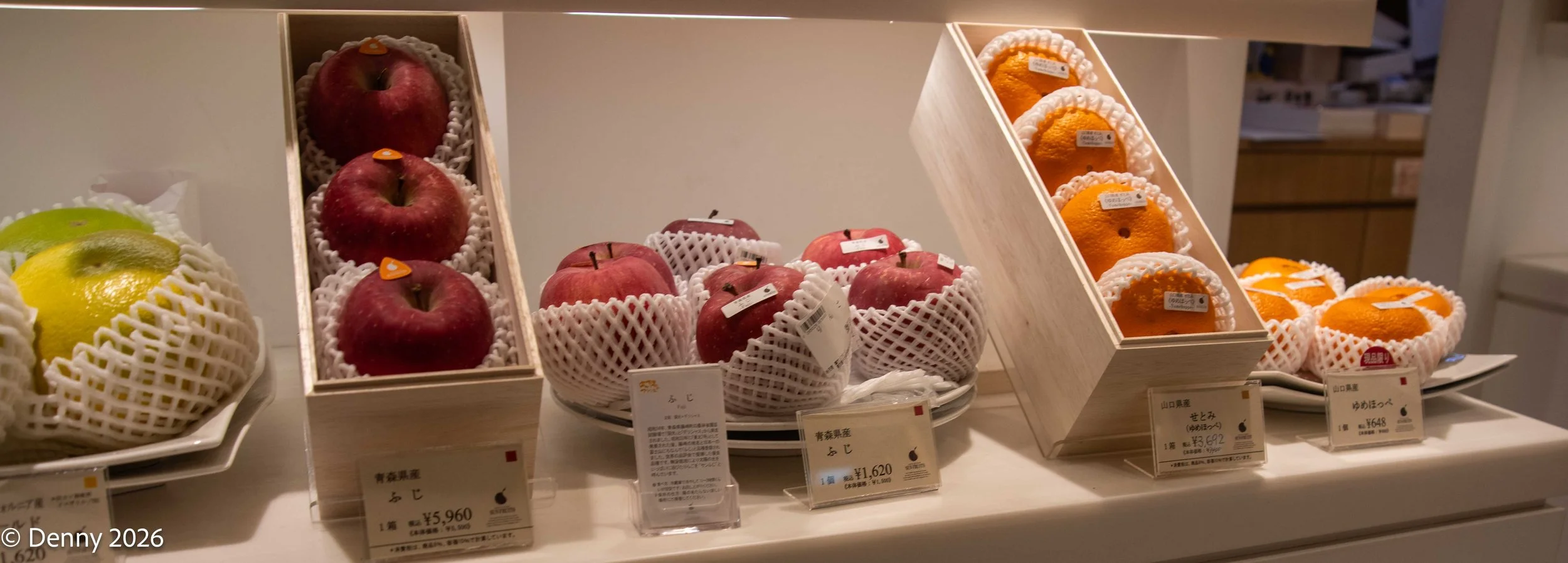 The first jaw-dropping sight was at a butcher’s market selling wagyu beef. The most expensive cuts cost ¥7,000 per 100 grams or approximately AU$650 per kilogram. Nearby we saw large apples for sale individually in neatly packaged polystyrene wraps for ¥1,620 or about $16.