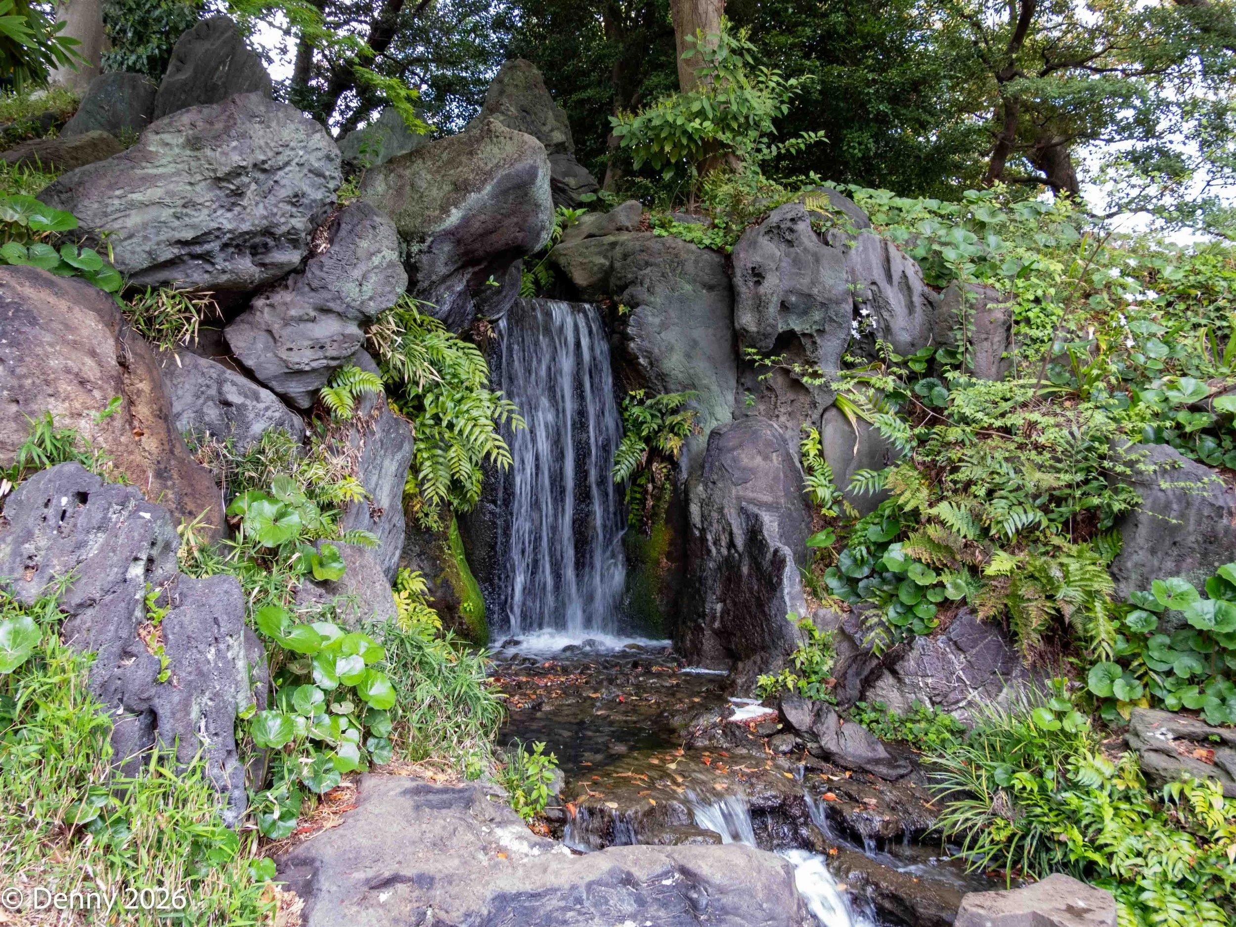 We continued on, despite the less than ideal weather conditions and found a pretty little waterfall cascading into a pond home to a number of large orange and white carp.