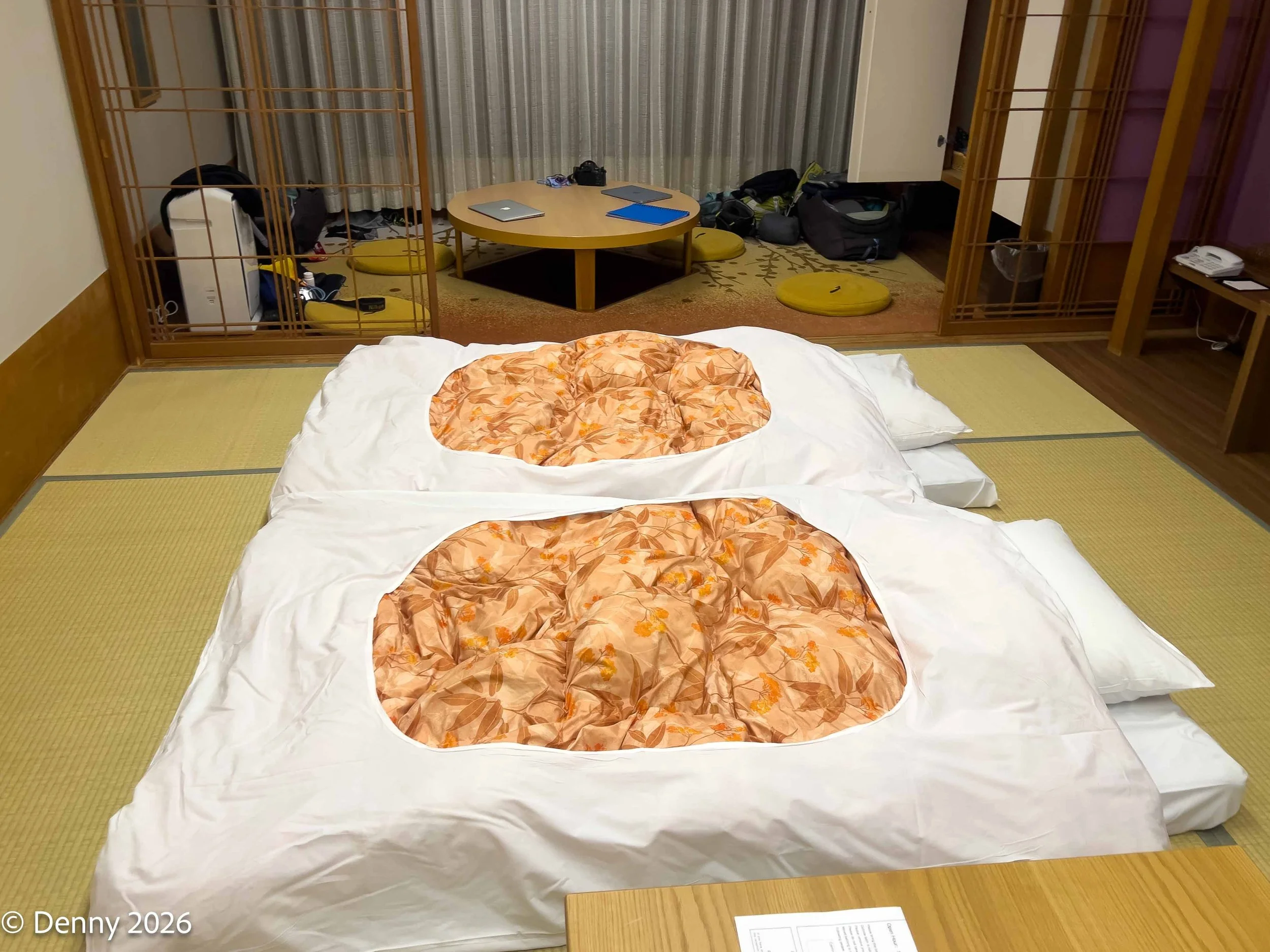 At 21:00 we returned to our bedroom to find our beds now set out for us on the floor.