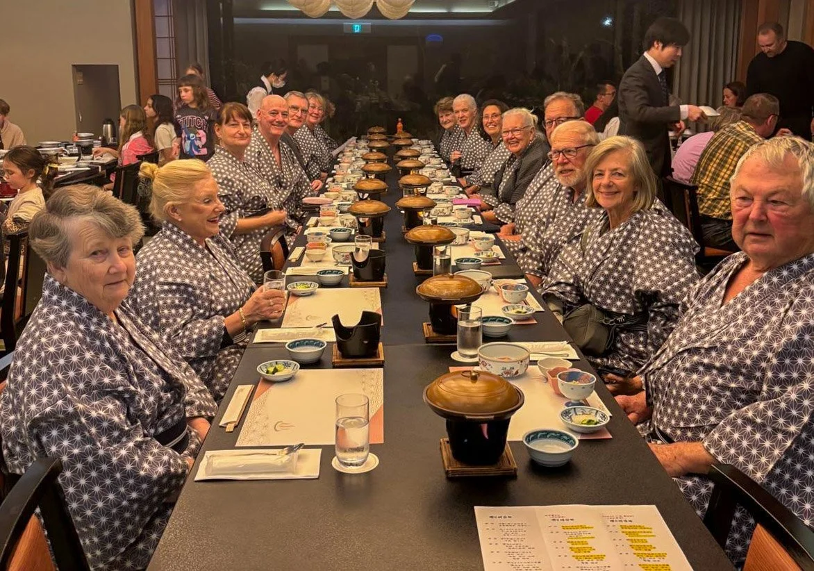 Group at dinner at Yunohana Prince Hotel, Hakone