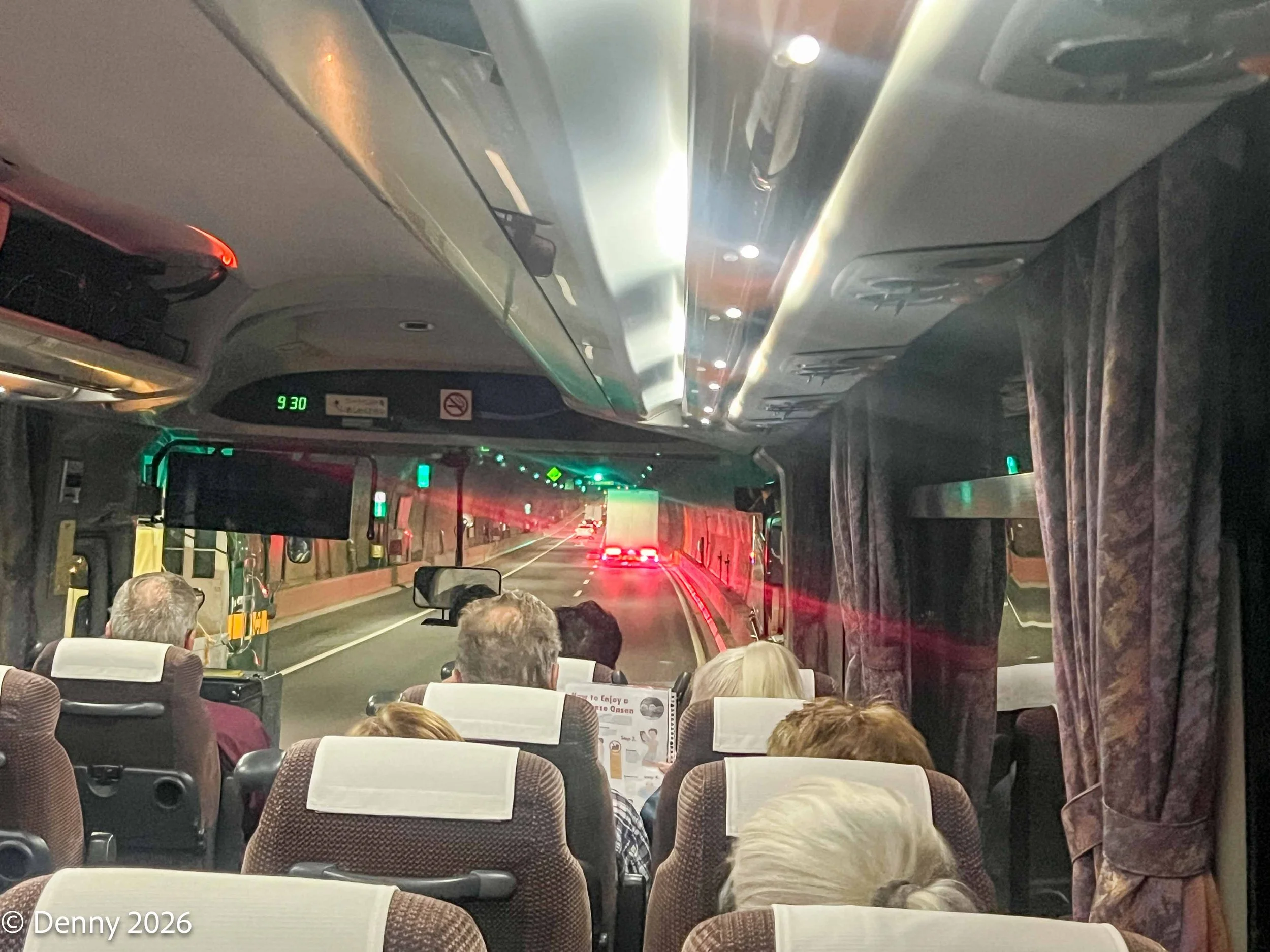 Inside our bus inside tunnel en route from Tokyo to Fukasawa